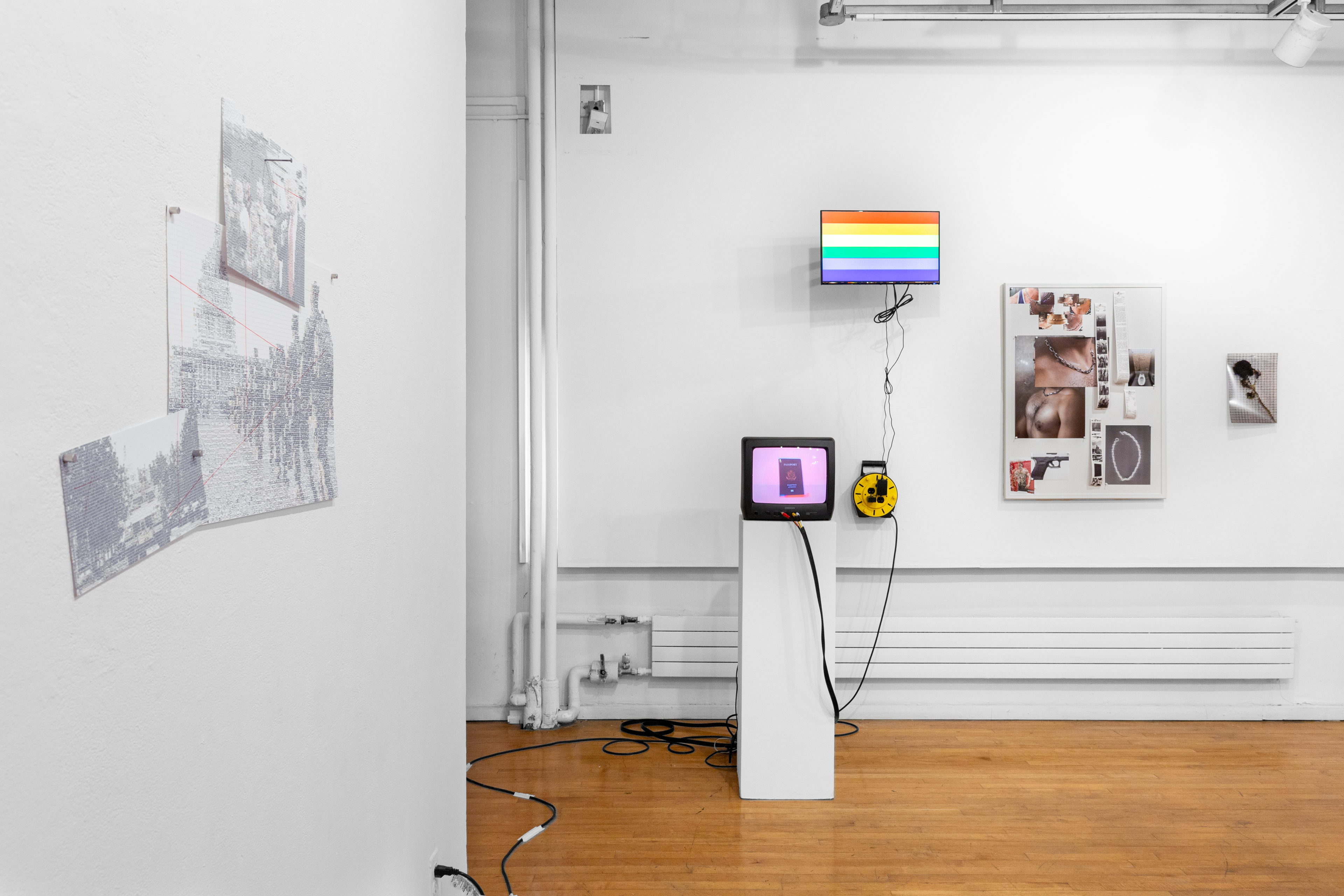 The photograms of used condoms, for example, turn acts of cruising, intimacy, and abandoned data (DNA) into fragile spectral residues. A cigarette-littered sidewalk and a condom-sink with a glowing screen mark the new city in my new life as a body too. Exhausted, littered, and endlessly consuming and letting go. These works extend this logic into the digital sphere. Each image, surface, or object is a residue of presence and personal motifs that connect into larger collective structures of decay and mediation. Screens, photos, bodies, and national icons are reconstituted as sites of interference and exposure.